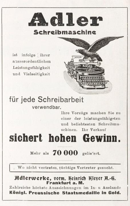 Adler Schreibmaschine [...] sichert hohen Gewinn