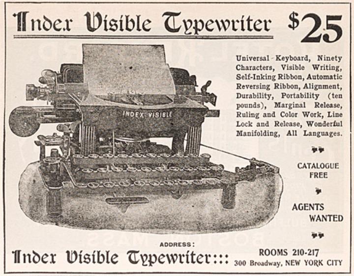 Werbeanzeige für Schreibmaschine Index Visible monochrom