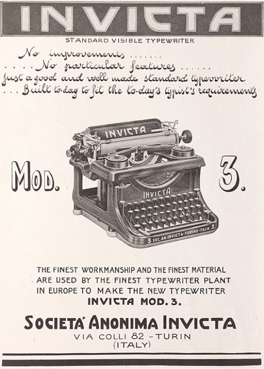Werbeanzeige für Schreibmaschine Invicta 3 monochrom