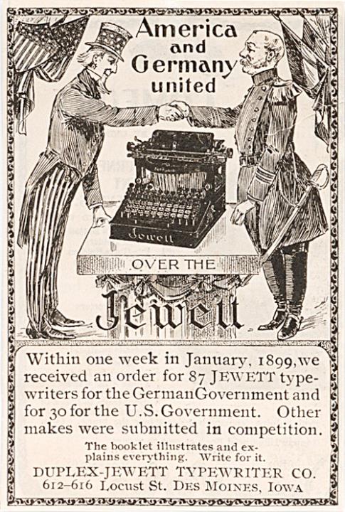 Werbeanzeige für Schreibmaschine Jewett monochrom