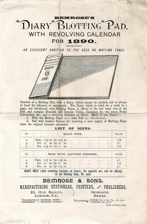 Werbeanzeige für Löschblock/Schreibunterlage Bemrose monochrom