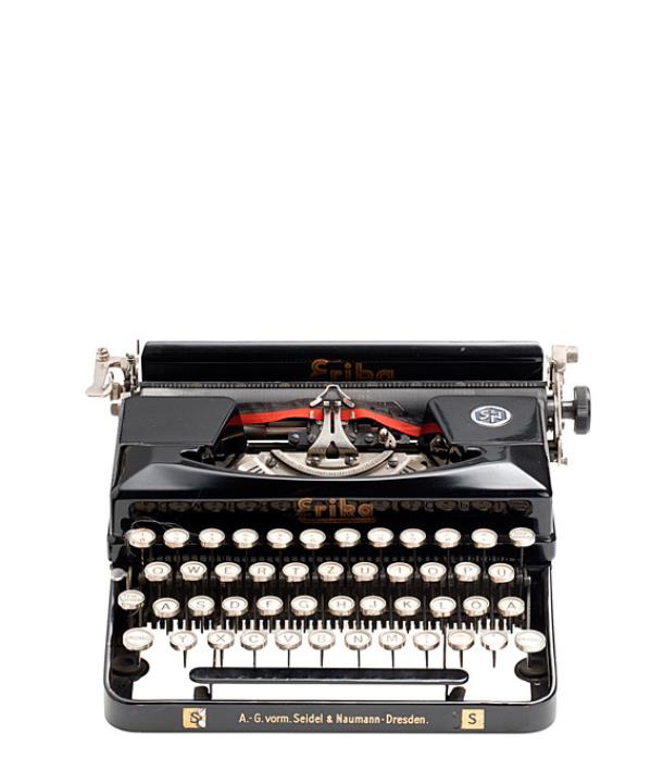 Schreibmaschine Erika Modell S Eigenschaften: Typenhebel, Vorderanschlag, einfache Umschaltung, Farbband Tastatur: universal, vierreihig, 43 Schreibtasten Besonderheit: vereinfachtes Modell 5, Seriennummer 849563/S