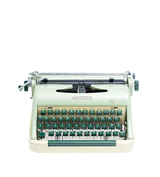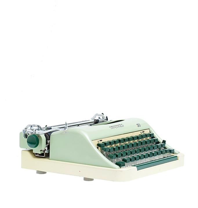 Schreibmaschine Torpedo Modell 30 (Farbe grün) Eigenschaften: Typenhebel, Vorderanschlag, einfache Umschaltung, Farbband Tastatur: universal, vierreihig, 43 Schreibtasten, Seriennummer 1036115