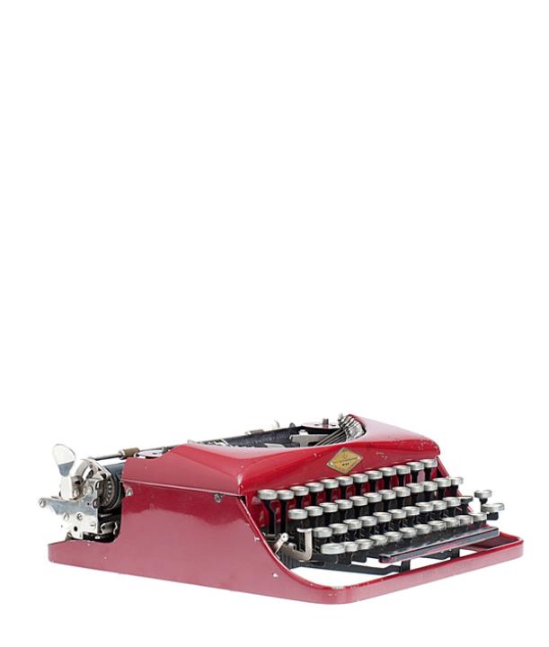 Schreibmaschine Torpedo Modell 14 (Farbe rot) Eigenschaften: Typenhebel, Vorderanschlag, einfache Umschaltung, Farbband Tastatur: universal, vierreihig, 44 Schreibtasten, Seriennummer 125586 / S-14 1261