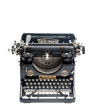 Schreibmaschine Triumph Modell 10 Eigenschaften: Typenhebel, Vorderanschlag, einfache Umschaltung, Farbband, Tabulator Tastatur: universal, vierreihig, 45 Schreibtasten Konstrukteur: Paul Grützmann, Heinrich Grützmann