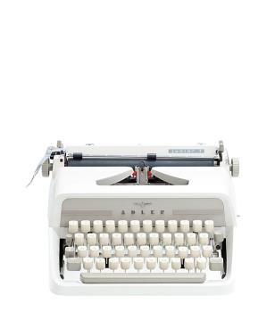 Schreibmaschine Adler Modell Junior E Eigenschaften: Typenhebel, Vorderanschlag, einfache Umschaltung, Farbband, Tabulator Tastatur: universal, vierreihig, 44 Schreibtasten