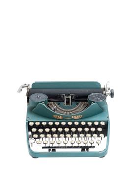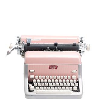 Schreibmaschine Royal Modell FP (Farbe grau/rosa) Eigenschaften: Typenhebel, Vorderanschlag, einfache Umschaltung, Farbband, Tabulator Tastatur: universal, vierreihig, 43 Schreibtasten Design: Laird Fortune Covey