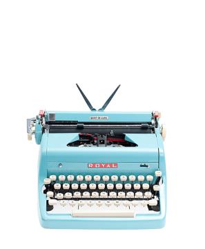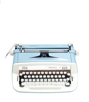 Schreibmaschine Royal Modell Quiet de Luxe (Farbe hellblau) Eigenschaften: Typenhebel, Vorderanschlag, einfache Umschaltung, Farbband, Tabulator Tastatur: universal, vierreihig, 44 Schreibtasten
