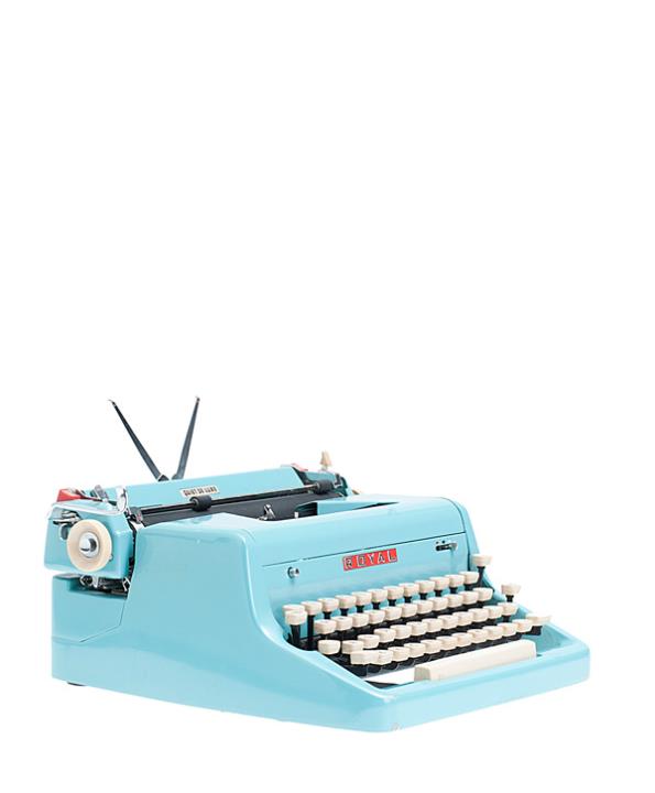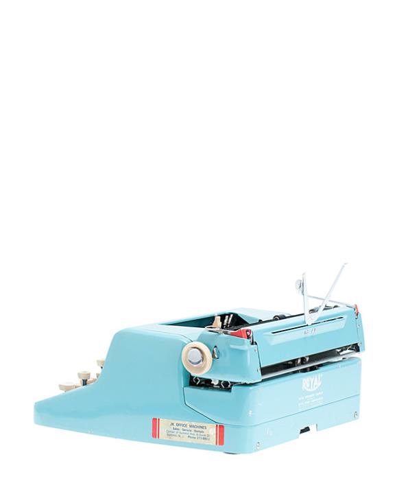 Schreibmaschine Royal Modell Quiet de Luxe (Farbe hellblau) Eigenschaften: Typenhebel, Vorderanschlag, einfache Umschaltung, Farbband, Tabulator Tastatur: universal, vierreihig, 44 Schreibtasten, Seriennummer AT3376688