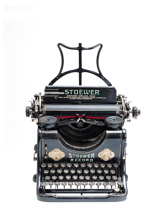 Schreibmaschine Stoewer Modell 5 (Record) Eigenschaften: Typenhebel, Vorderanschlag, einfache Umschaltung, Farbband Tastatur: universal, vierreihig, 44 Schreibtasten Konstrukteur: Paul Grützmann andere Bezeichnung: Swift, Seriennummer 47869