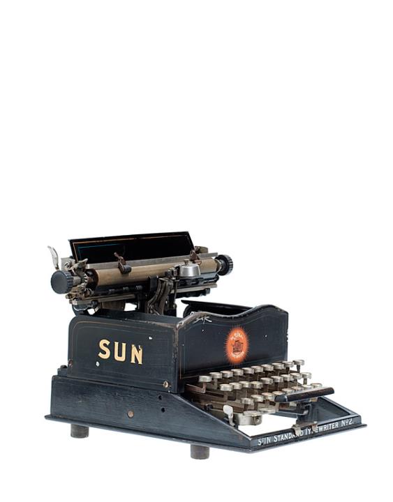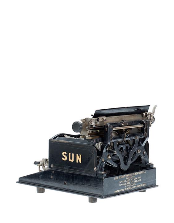 Schreibmaschine Sun Modell 2 Eigenschaften: Typenhebel, Vorderanschlag, doppelte Umschaltung (Wippschalter), Farbröllchen Tastatur: universal, dreireihig, 27 Schreibtasten Konstrukteur: Lee Burridge andere Bezeichnung: Star Besonderheit: Farbröllchen mit Nachfülltank; erste Typenhebelmaschine im Kleinformat, Seriennummer 25518