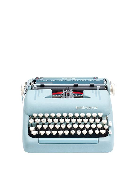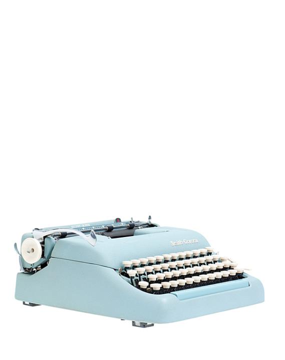 Schreibmaschine Smith Corona Modell Silent Super (Farbe blau) Eigenschaften: Typenhebel, Vorderanschlag, einfache Umschaltung, Farbband, Tabulator Tastatur: universal, vierreihig, 44 Schreibtasten, Seriennummer 5T712750X