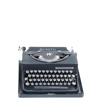 Schreibmaschine Olivetti Modell M 40 Eigenschaften: Typenhebel, Vorderanschlag, einfache Umschaltung, Farbband Tastatur: universal, deutsch, vierreihig, 45 Schreibtasten Konstrukteur: Camillo Olivetti, Gino Levi Martinoli