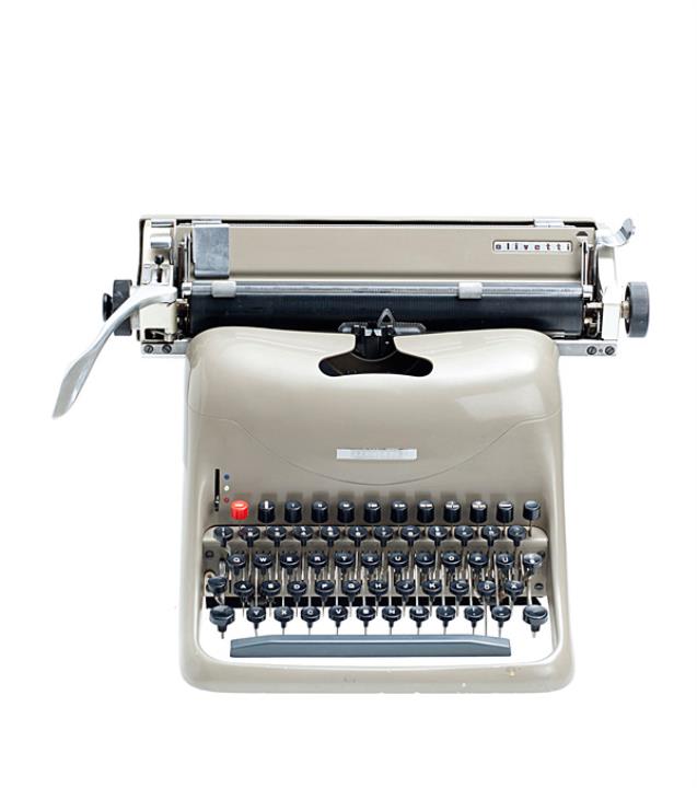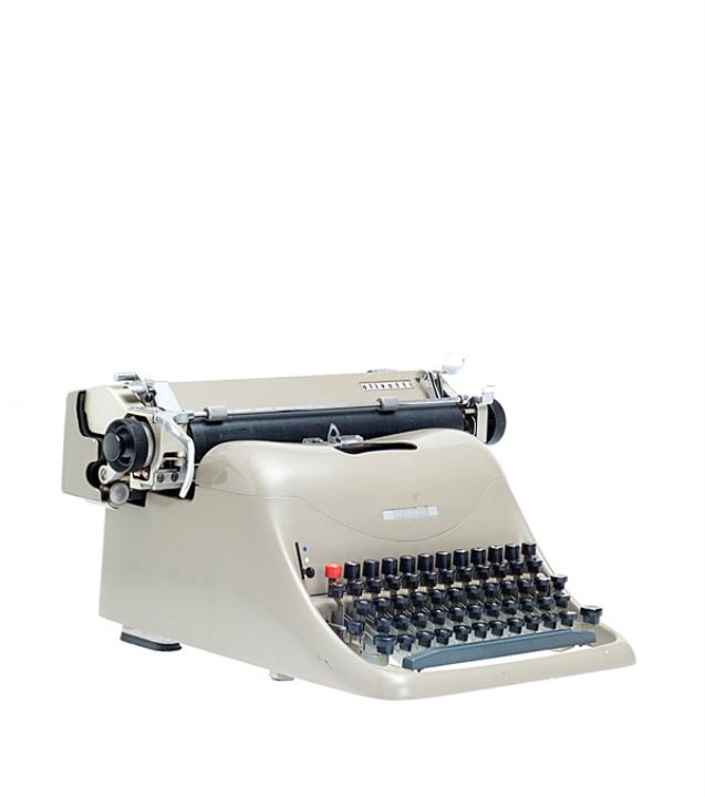 Schreibmaschine Olivetti Modell Lexikon 80 Eigenschaften: Typenhebel, Vorderanschlag, einfache Umschaltung, Farbband, Tabulator Tastatur: universal, fünfreihig, 45+8 Tasten Konstrukteur/Design: Giuseppe Beccio, Marcello Nizzoli, Seriennummer 2411581