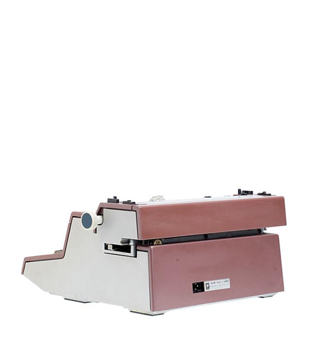 Elektrische Schreibmaschine Olivetti Modell Editor (T5) Eigenschaften: Typenhebel, Vorderanschlag, einfache Umschaltung, Farbband, Tabulator, Elektromotor (220V, 50W, 50Hz), Wechselschritt-Taste Tastatur: universal, vierreihig, 45 Schreibtasten Konstrukteur/Design: Rinaldo Salto, Hans Von Klier, Ettore Sottsass jr., Seriennummer 6003095