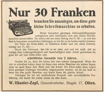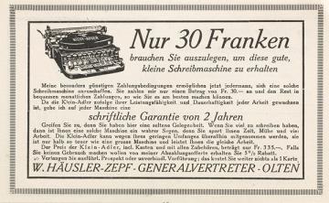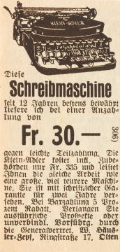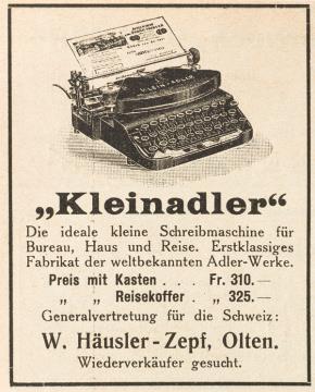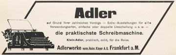 Werbeanzeige für Schreibmaschine Klein-Adler monochrom