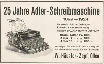 25 Jahre Adler Schreibmaschine 17.Febr.1899-1924
