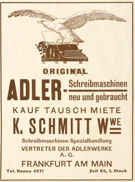 Werbeanzeige für Schreibmaschine Adler monochrom