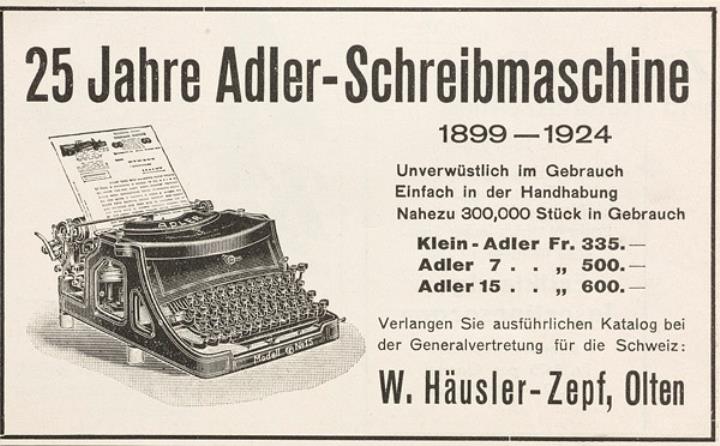 Werbeanzeige für Schreibmaschine Adler monochrom