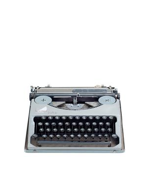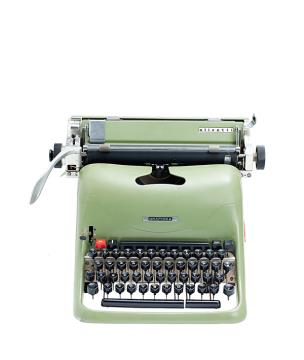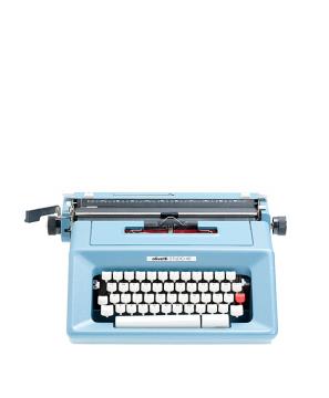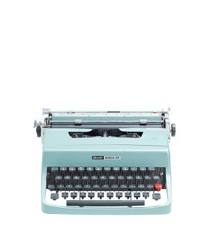 Schreibmaschine Olivetti Modell Lettera 32 (Farbe hellblau) Eigenschaften: Typenhebel, Vorderanschlag, einfache Umschaltung, Farbband Tastatur: universal, vierreihig, 43 Schreibtasten Konstrukteur/Design: Giuseppe Beccio, Marcello Nizzoli Besonderheit: Nachfolgemodell der Schreibmaschine Olivetti Lettera 22