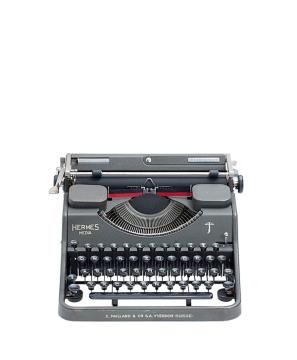 Schreibmaschine Hermes Modell Baby Eigenschaften: Typenhebel, Vorderanschlag, einfache Umschaltung, Farbband Tastatur: universal, vierreihig, 42 Schreibtasten Konstrukteur: Giuseppe Prezioso andere Bezeichnung: Hermes Rocket