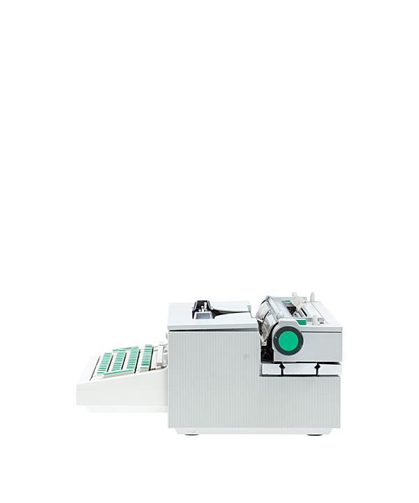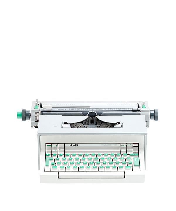 Elektrische Schreibmaschine Olivetti Modell Praxis 48 Eigenschaften: Typenhebel, Vorderanschlag, einfache Umschaltung, Farbband, Tabulator, Elektromotor (220V, 35W, 50Hz) Tastatur: universal, vierreihig, 46 Schreibtasten Konstrukteur/Design: Rinaldo Salto, Hans Von Klier, Ettore Sottsass jr., Seriennummer 5166877