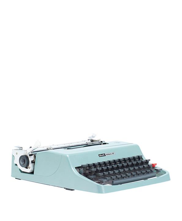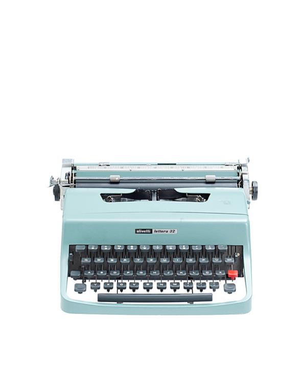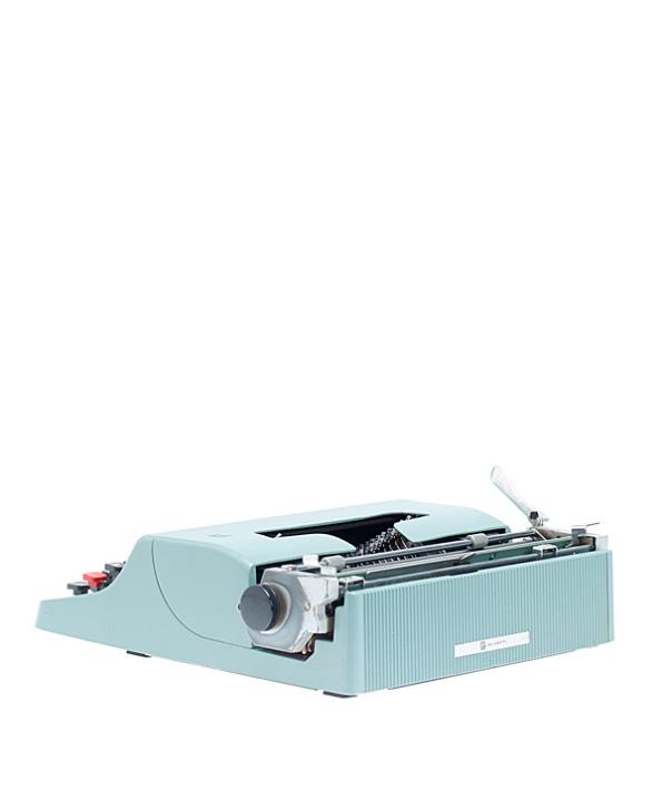 Schreibmaschine Olivetti Modell Lettera 32 (Farbe hellblau) Eigenschaften: Typenhebel, Vorderanschlag, einfache Umschaltung, Farbband Tastatur: universal, vierreihig, 43 Schreibtasten Konstrukteur/Design: Giuseppe Beccio, Marcello Nizzoli Besonderheit: Nachfolgemodell der Schreibmaschine Olivetti Lettera 22, Seriennummer 6791907