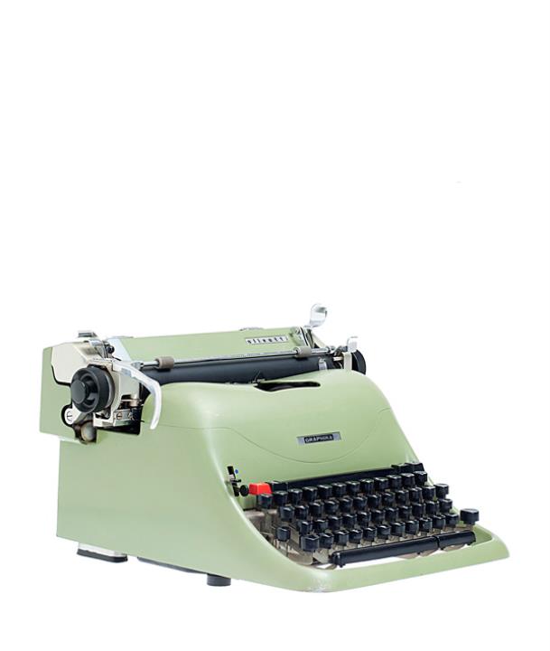 Schreibmaschine Olivetti Modell Graphika Eigenschaften: Typenhebel, Vorderanschlag, einfache Umschaltung, Farbband, Tabulator Tastatur: universal, vierreihig, 45 Schreibtasten Konstrukteur/Design: Giuseppe Beccio, Marcello Nizzoli Besonderheit: erstes Olivetti-Modell mit Proportionalschrift, Seriennummer 1802162