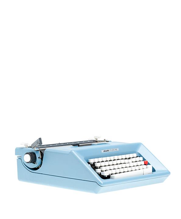 Schreibmaschine Olivetti Modell Studio 46 (Serie I) Eigenschaften: Typenhebel, Vorderanschlag, einfache Umschaltung, Farbband Tastatur: universal, vierreihig, 43 Schreibtasten Konstrukteur/Design: Derk Jan de Vries, Antonio Macchi Cassia, Giovanni Pasini, Sandro Pasqui, Mario Bellini, Seriennummer 269770