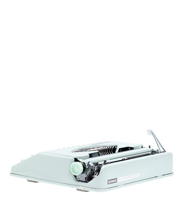 Schreibmaschine Hermes Modell Baby Eigenschaften: Typenhebel, Vorderanschlag, einfache Umschaltung, Farbband Tastatur: universal, vierreihig, 42 Schreibtasten Konstrukteur: Giuseppe Prezioso andere Bezeichnung: Hermes Rocket, Seriennummer 9008100