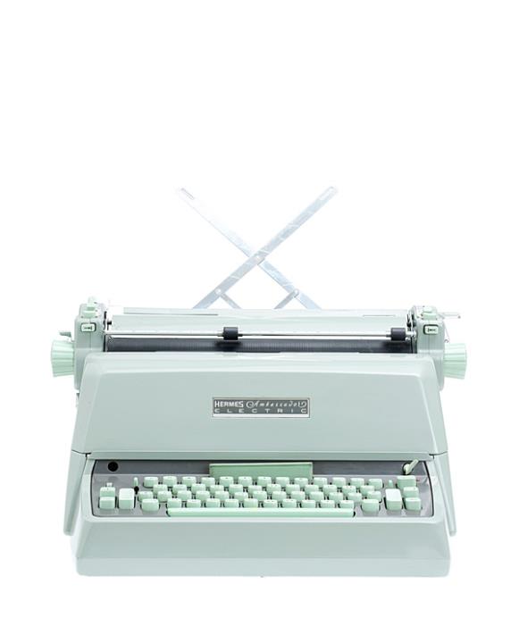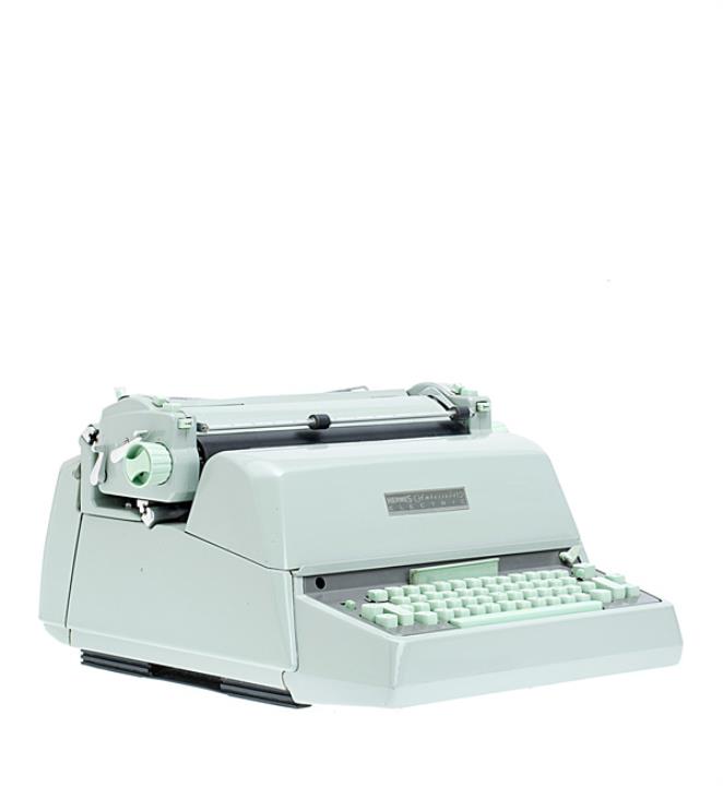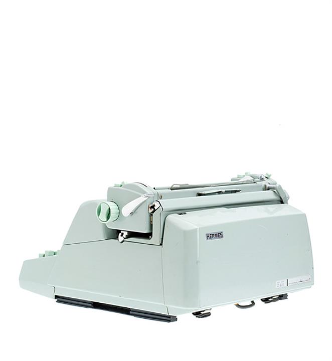 Elektrische Schreibmaschine Hermes Modell Ambassador Electric Eigenschaften: Typenhebel, Vorderanschlag, einfache Umschaltung, Farbband, Tabulator, Elektromotor (220/240V, 60W, 50Hz) Tastatur: universal, vierreihig, 46 Schreibtasten, Seriennummer 8279809