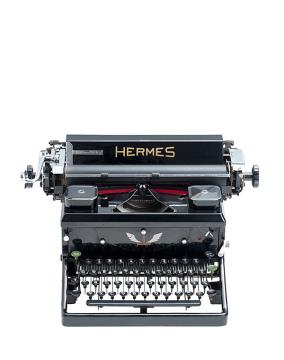 Schreibmaschine Hermes Modell Standard 5 Eigenschaften: Typenhebel, Vorderanschlag, einfache Umschaltung, Farbband, Tabulator Tastatur: universal, vierreihig, 45 Schreibtasten