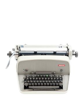 Schreibmaschine Olympia Modell Traveller de Luxe S Eigenschaften: Typenhebel, Vorderanschlag, einfache Umschaltung, Farbband Tastatur: universal, vierreihig, 44 Schreibtasten Design: Alfons Boothby, Georges Joseph