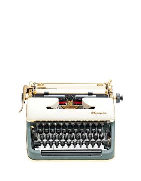 Schreibmaschine Olympia Modell SM 3 Eigenschaften: Typenhebel, Vorderanschlag, einfache Umschaltung, Farbband, Tabulator Tastatur: universal, vierreihig, 44 Schreibtasten Besonderheiten: einzelne Metallteile vergoldet
