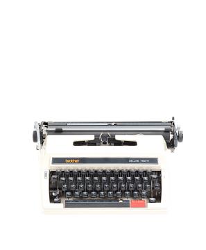 Schreibmaschine Brother Modell DeLuxe 762TR Eigenschaften: Typenhebel, Vorderanschlag, einfache Umschaltung, Farbband Tastatur: universal, arabisch, vierreihig, 44 Schreibtasten