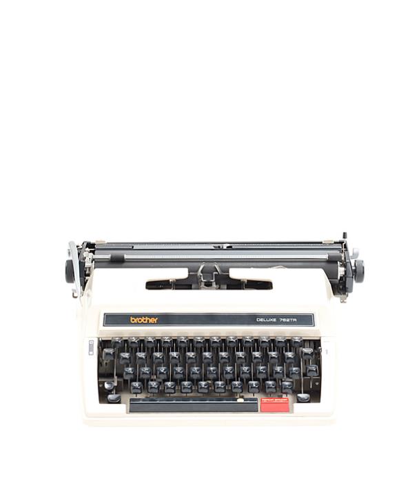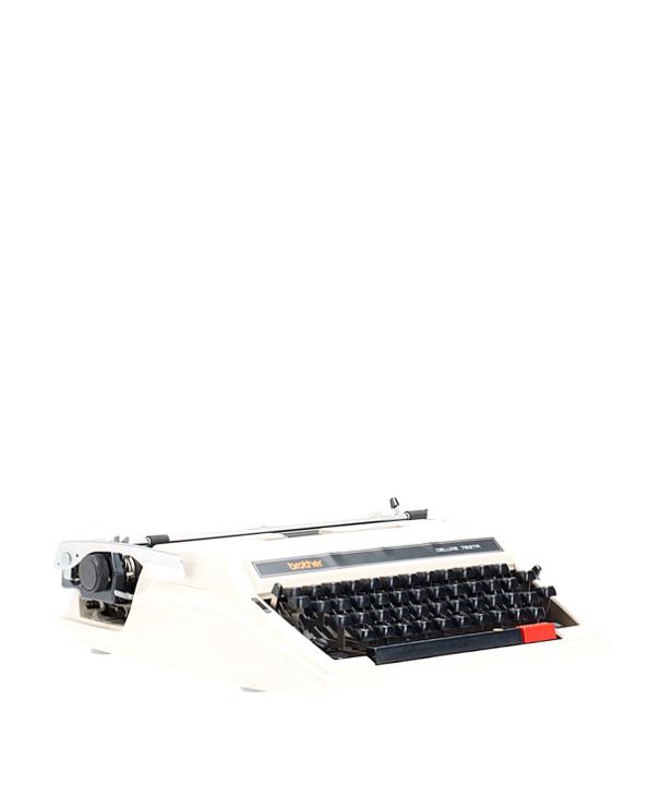 Schreibmaschine Brother Modell DeLuxe 762TR Eigenschaften: Typenhebel, Vorderanschlag, einfache Umschaltung, Farbband Tastatur: universal, arabisch, vierreihig, 44 Schreibtasten, Seriennummer E7296099