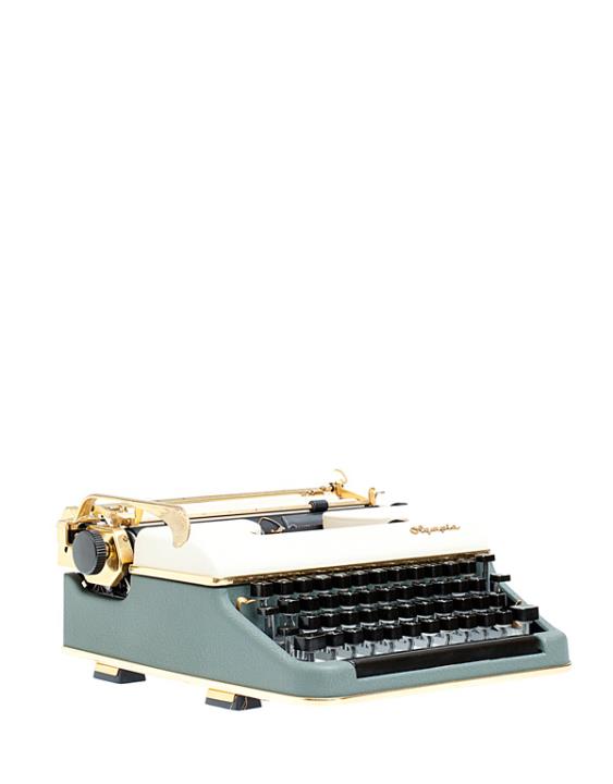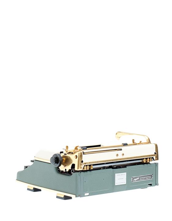Schreibmaschine Olympia Modell SM 3 Eigenschaften: Typenhebel, Vorderanschlag, einfache Umschaltung, Farbband, Tabulator Tastatur: universal, vierreihig, 44 Schreibtasten Besonderheiten: einzelne Metallteile vergoldet, Seriennummer 560553