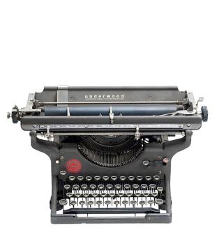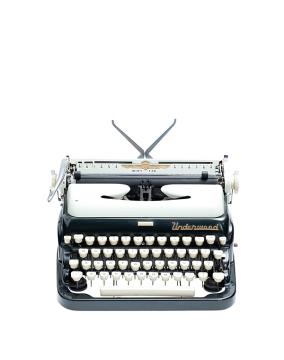 Schreibmaschine Underwood Modell Touchmaster Eigenschaften: Typenhebel, Vorderanschlag, einfache Umschaltung, Farbband, Tabulator Tastatur: universal, vierreihig, 43 Schreibtasten, "Gold Touch"