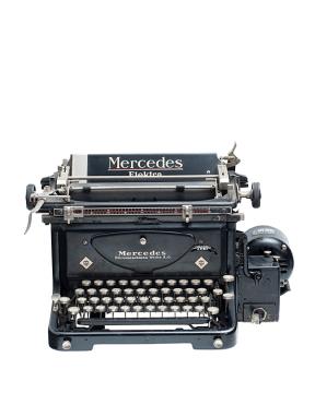 Schreibmaschine Mercedes Modell K 45 Eigenschaften: Typenhebel, Vorderanschlag, einfache Umschaltung, Farbband Tastatur: universal, vierreihig, 44 Schreibtasten