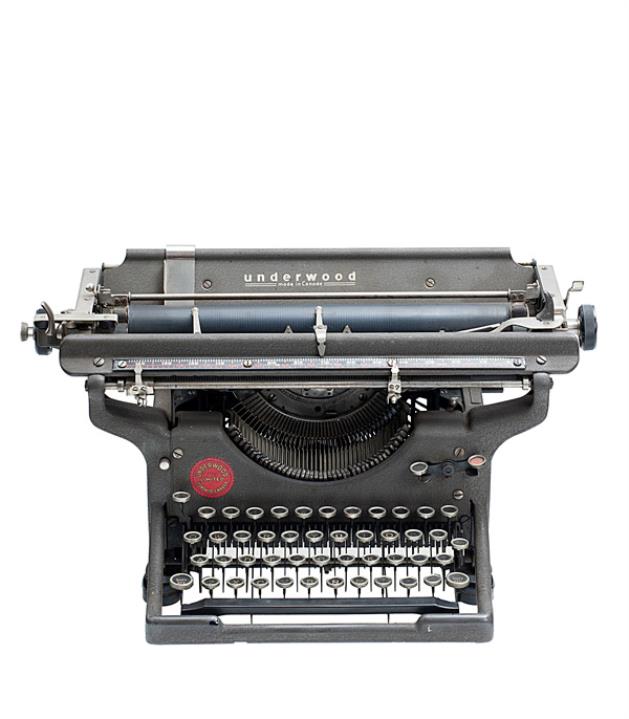Schreibmaschine Underwood Modell 3 (?); made in Canada Eigenschaften: Typenhebel, Vorderanschlag, einfache Umschaltung, Farbband, Tabulator, Breitwagen Tastatur: universal, vierreihig, 42 Schreibtasten Besonderheit: vermutlich handelt es sich hier um einen Restbestand, der nach 1950 neu lackiert auf den kanadischen Markt gebracht wurde, Seriennummer 560454-l4