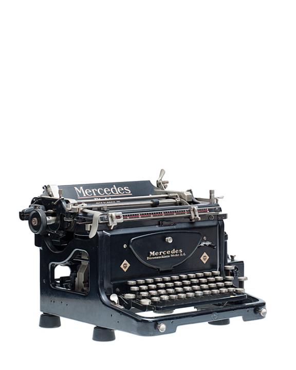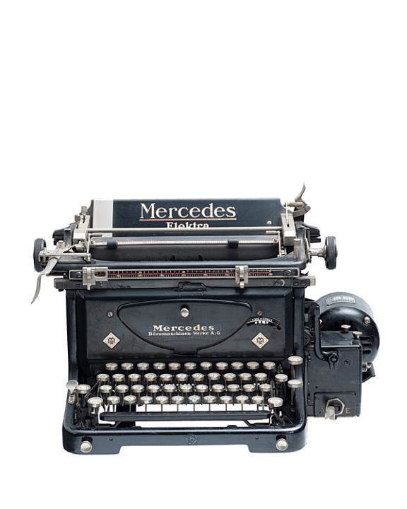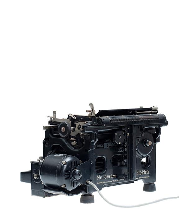 Elektrische Schreibmaschine Mercedes Modell Elektra 3 Eigenschaften: Typenhebel, Vorderanschlag, einfache Umschaltung, Farbband, Tabulator, Elektromotor (220V, 21.5W, 0.42A) Tastatur: universal, vierreihig, 43 Schreibtasten Konstrukteur: Carl Schlüns, Seriennummer 387392