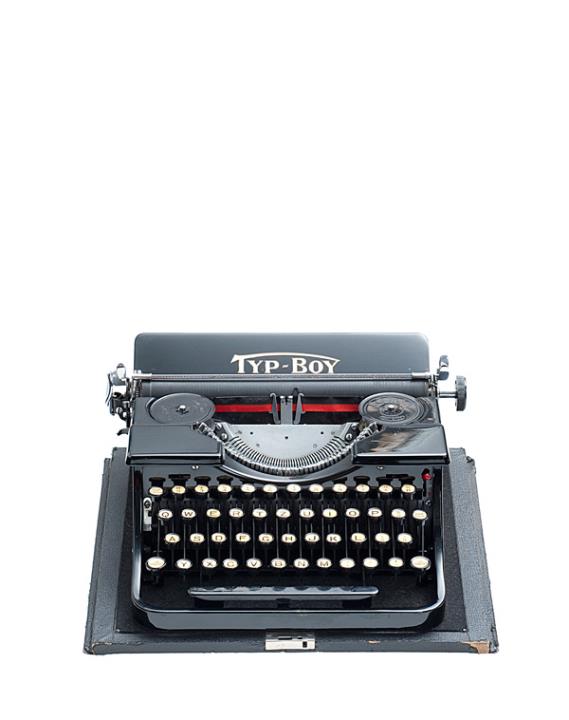 Schreibmaschine Typ-Boy Eigenschaften: Typenhebel, Vorderanschlag, einfache Umschaltung, Farbband Tastatur: universal, vierreihig, 43 Schreibtasten Konstrukteur: Herbert Etheridge Besonderheit: Version der Schreibmaschine Torpedo 15a, Seriennummer 159232