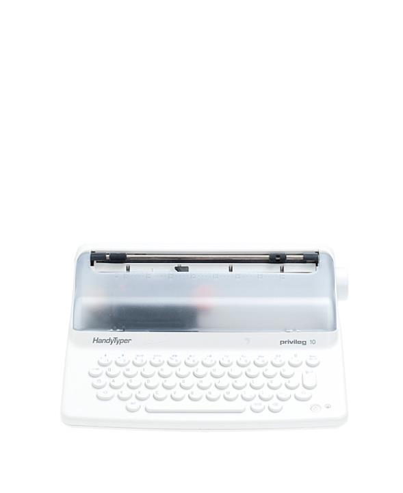 Elektrische Schreibmaschine Privileg Modell 10 (HandyTyper) Eigenschaften: Typenrad, Vorderanschlag, einfache Umschaltung, Farbbandkassette, Korrekturband, Batterieantrieb (6x1.5V, 10W) Tastatur: universal, fünfreihig, 44 Schreibtasten Besonderheit: entspricht der Schreibmaschine Brother HandyTyper / Brother PX-50, Seriennummer C75280500