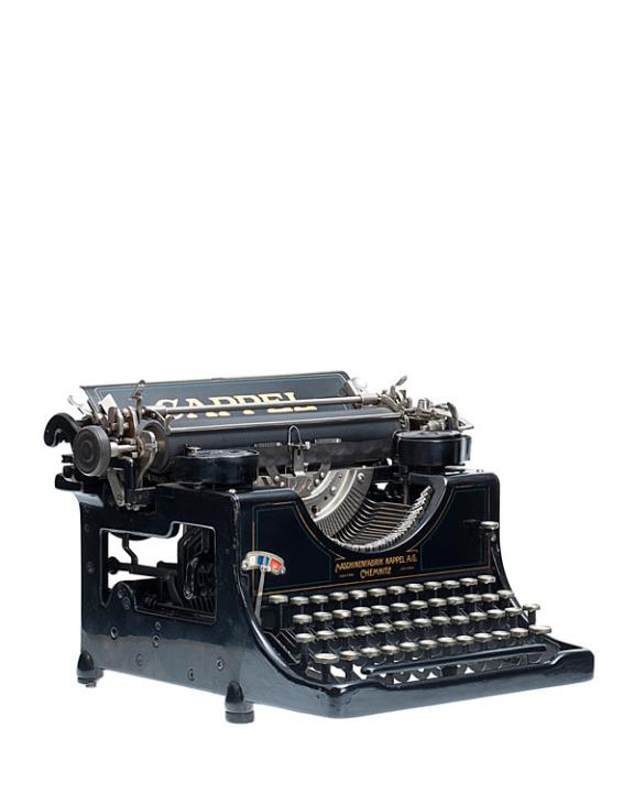 Schreibmaschine Kappel Modell 2 Eigenschaften: Typenhebel, Vorderanschlag, einfache Umschaltung, Farbband, Tabulator Tastatur: universal, vierreihig, 44 Schreibtasten Konstrukteur: Otto Rössler, Bernhard Dost, Seriennummer 63354