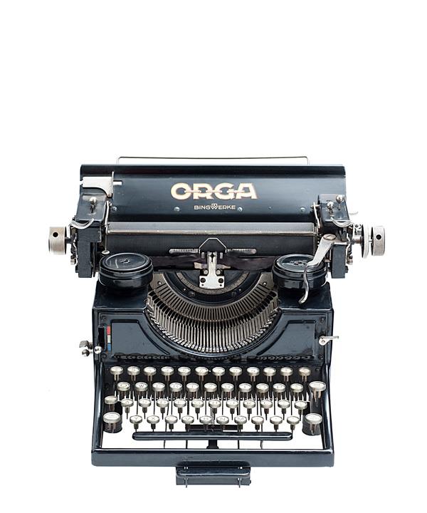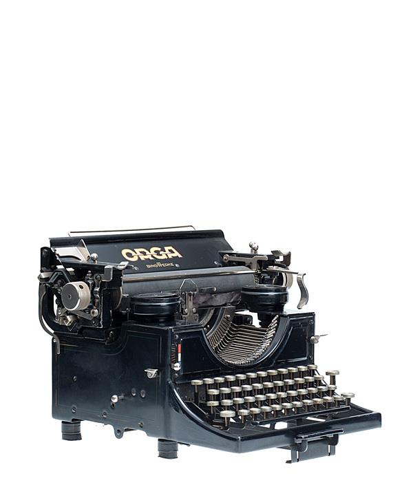 Schreibmaschine Orga Modell Standard Eigenschaften: Typenhebel, Vorderanschlag, einfache Umschaltung, Farbband, Tabulator Tastatur: universal, vierreihig, 43 Schreibtasten Konstrukteur: Paul Grützmann Besonderheit: Daumen-Tabulatortaste, Seriennummer 27455