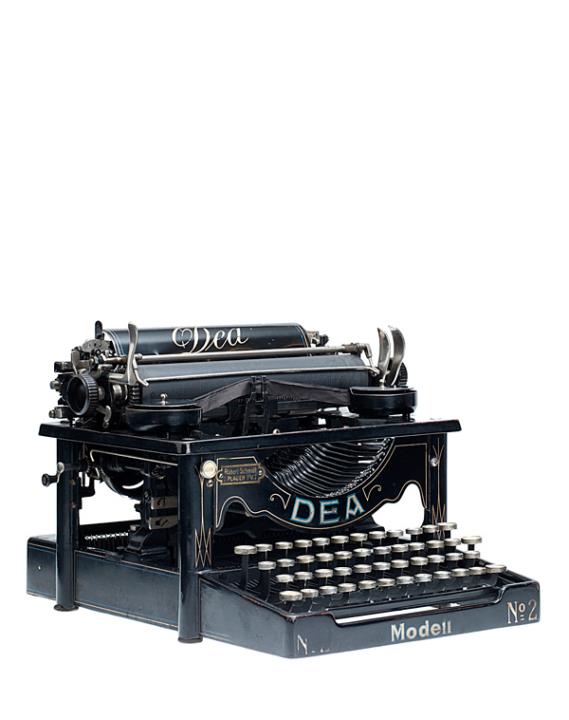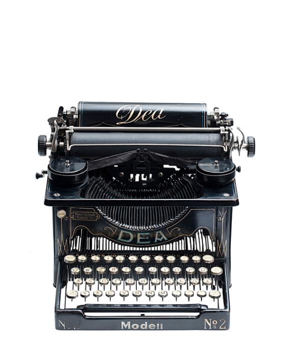 Schreibmaschine Dea Modell 2 Eigenschaften: Typenhebel, Vorderanschlag, einfache Umschaltung, Farbband, Tabulator, seitliche Farbband-Rückspulkurbel Tastatur: universal, vierreihig, 42 Schreibtasten Konstrukteur: Franz Herlt, Seriennummer 1816