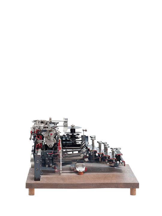 Schaumodell der Schreibmaschine Merz 3 mit Längsschnitt durch Tastatur und Typenhebelwerk Konstrukteur: Adolf Fritz Schauss, Modellnummer 90M02