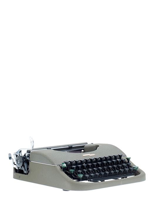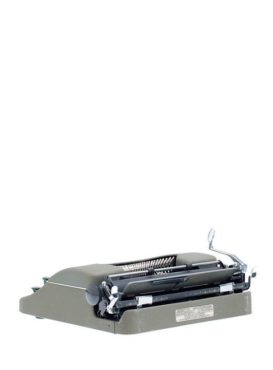 Schreibmaschine Swissa Modell Piccola Eigenschaften: Typenhebel, Vorderanschlag, einfache Umschaltung, Farbband Tastatur: universal, vierreihig, 43 Schreibtasten Design: Max Bill, Seriennummer 96543