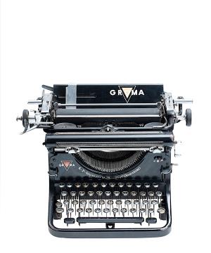 Schreibmaschine Groma Modell 1 S Eigenschaften: Typenhebel, Vorderanschlag, einfache Umschaltung, Farbband, Tabulator Tastatur: universal, vierreihig, 45 Schreibtasten Konstrukteur: Max Pfau