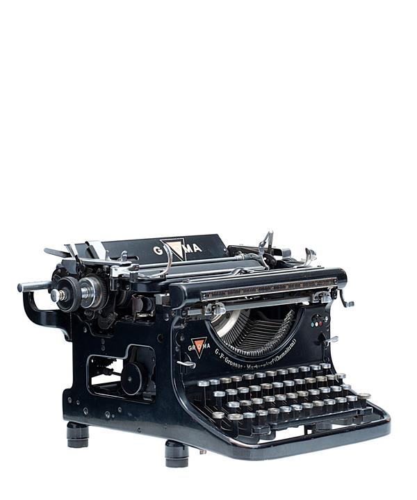 Schreibmaschine Groma Modell 1 S Eigenschaften: Typenhebel, Vorderanschlag, einfache Umschaltung, Farbband, Tabulator Tastatur: universal, vierreihig, 45 Schreibtasten Konstrukteur: Max Pfau, Seriennummer 117766